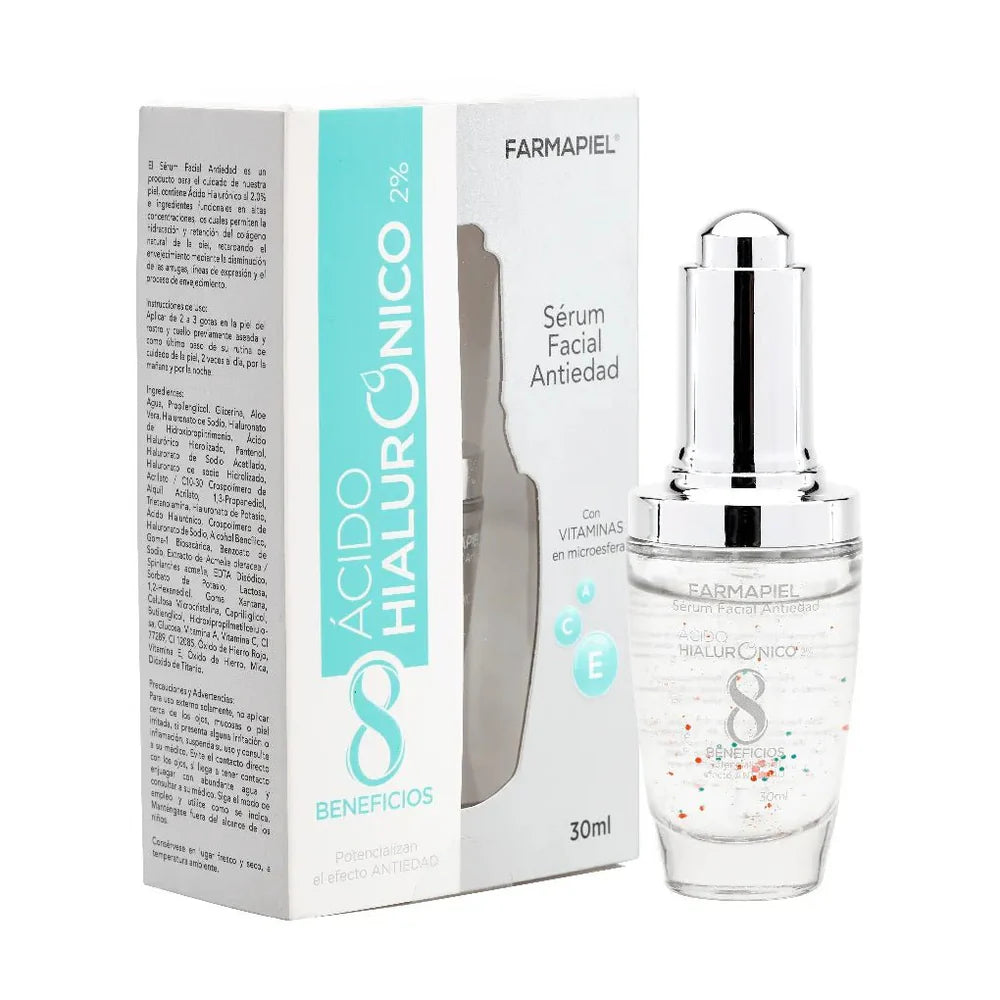 ácido hialurónico, suero hidratante, sérum facial, Farmapiel, hidratación profunda, piel seca, cuidado facial diario, elasticidad facial, líneas de expresión, piel luminosa, suero ácido hialurónico 2%