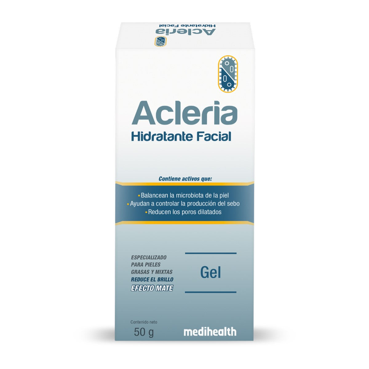 acleria hidratante facial, gel hidratante piel grasa, control sebo, poros dilatados, efecto mate, balance microbiota, supiel.com.mx