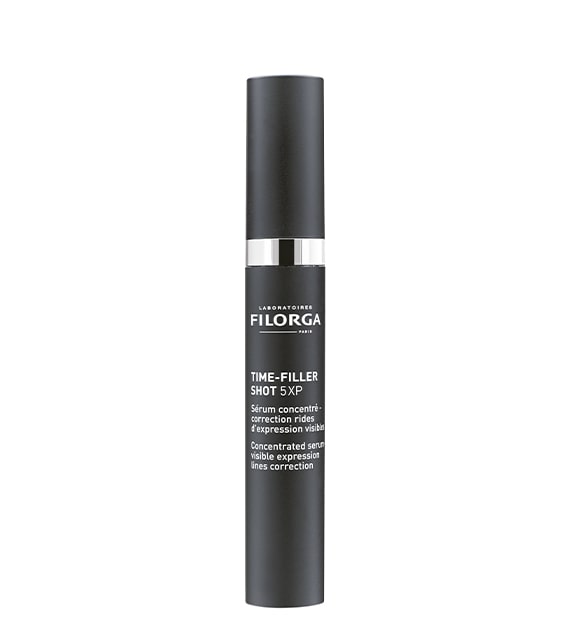 Time‑Filler Shot 5XP de Filorga es un tratamiento concentrado (60 % activos) inspirado en la toxina botulínica, diseñado para atenuar de forma eficaz las primeras líneas de expresión como patas de gallo, surcos frontales, código de barras y comisuras. Su fórmula combina neuro-péptidos, polisacáridos hidratantes y fermentos marinos para una acción reafirmante, efecto botox-like y piel más tonificada y radiante.