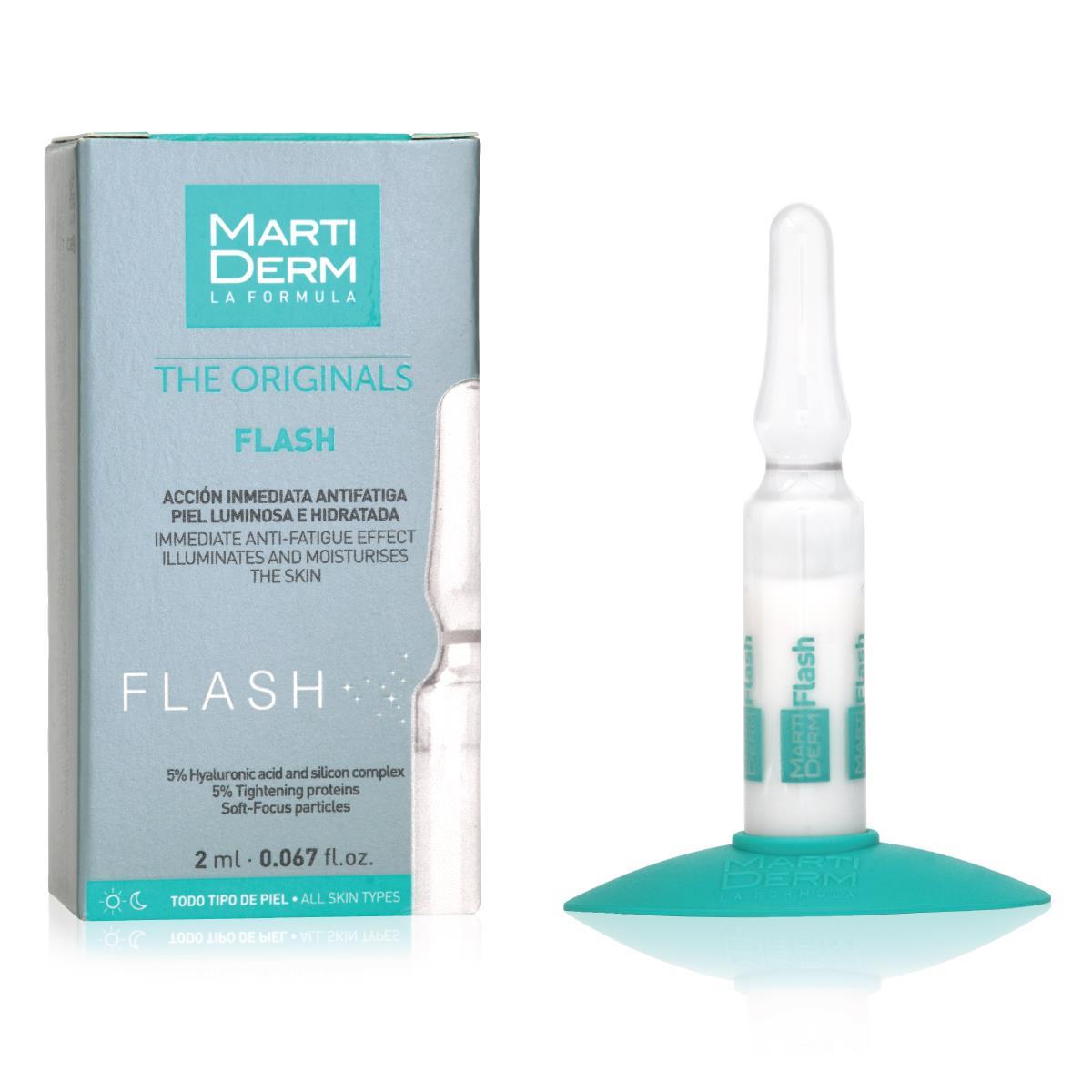 ampolla flash, efecto antifatiga, ácido hialurónico, primer facial, efecto lifting, piel luminosa, prebase maquillaje, martiderm the originals, hidratación instantánea, evento especial, piel radiante, ampolla hidratante
